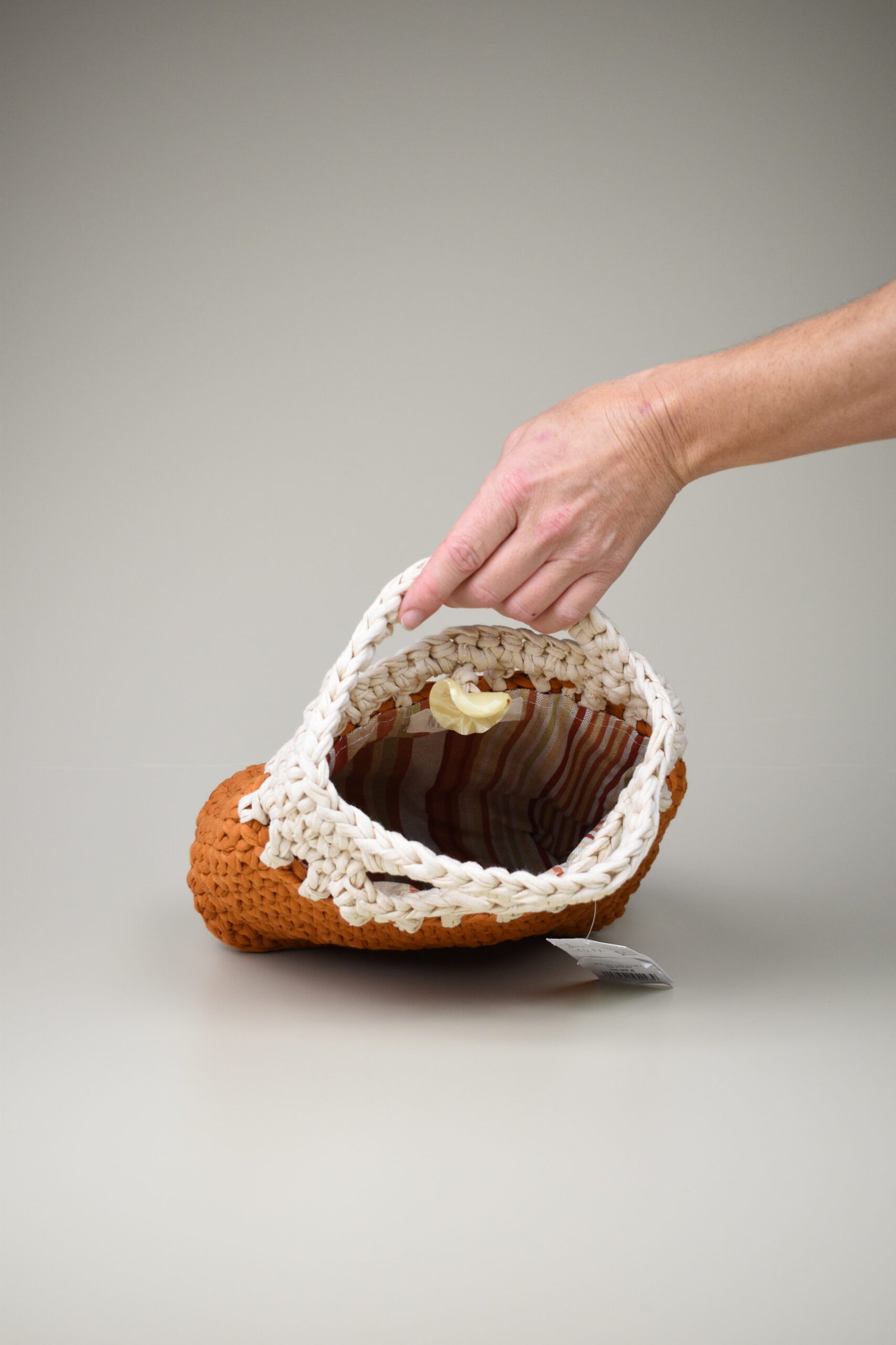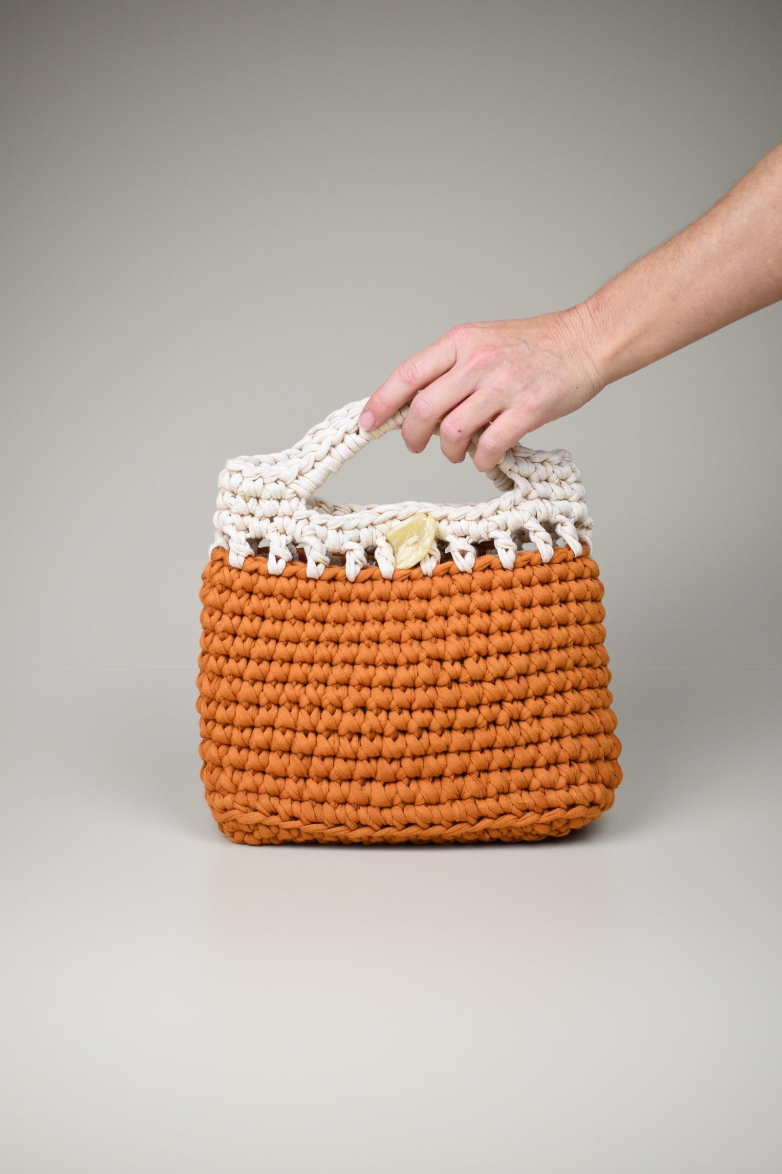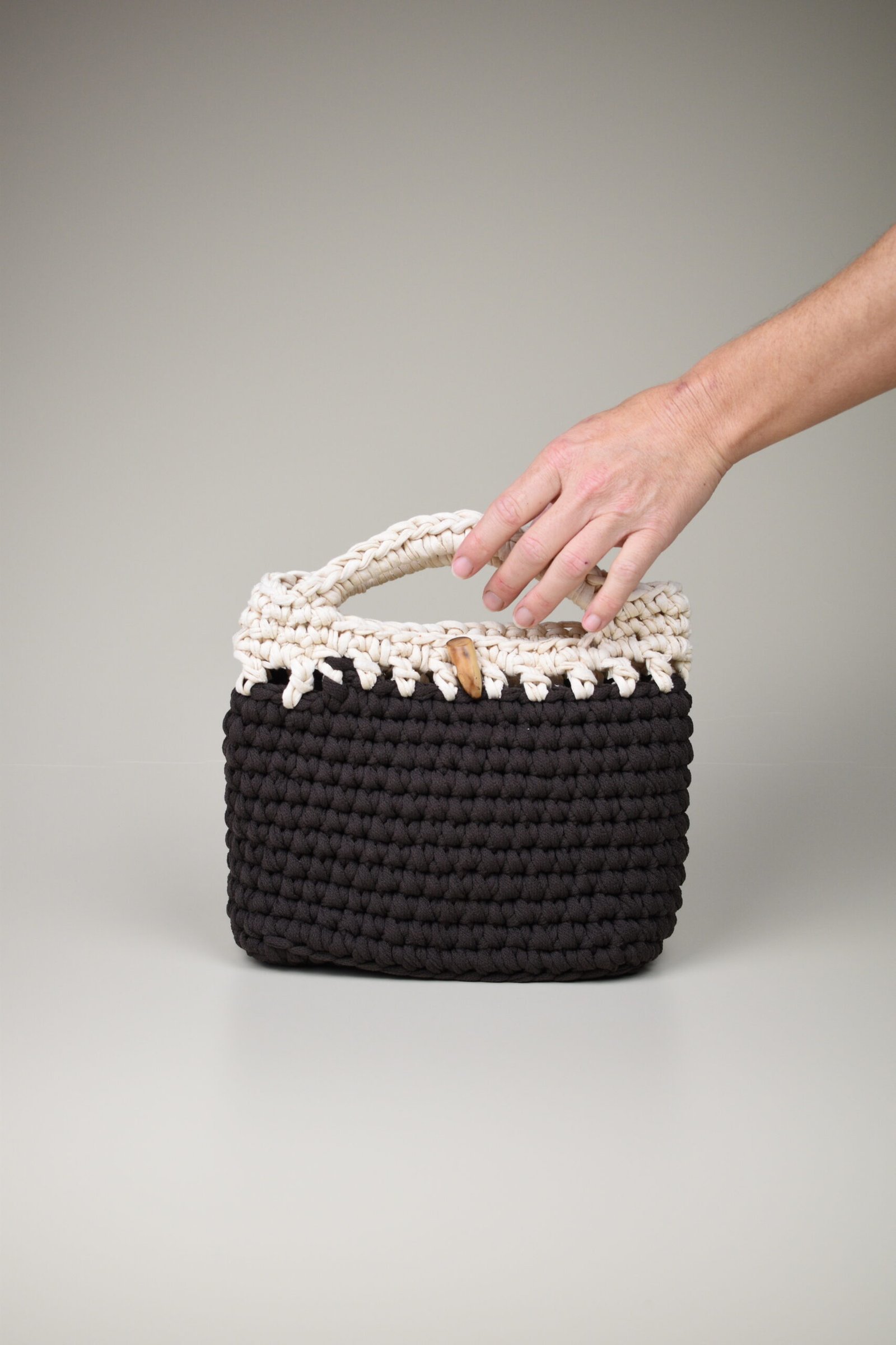 Descubre el Bolso Crochet Mezclat, una pieza única tejida a mano en Mallorca con hilo reciclado. Su silueta compacta y artesanal lo convierte en el complemento perfecto para tus días y ocasiones especiales.